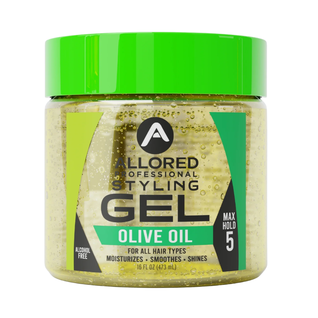 Allored Professional Olive Oil Styling Gel Max Hold 473ml is a strong hold styling gel designed to help keep hairstyles in place while adding moisture, shine and a smoother finish. Infused with olive oil, this alcohol-free formula helps control frizz, define curls and support sleek styles without leaving hair feeling stiff, flaky or sticky. It is suitable for all hair types and works well for everyday styling, slick looks, curls, twists, braids and updos.