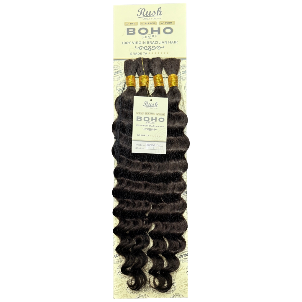 Rush 100% Virgin Brazilian Boho Braids Deep Wave Bulk Hair 21"–23"